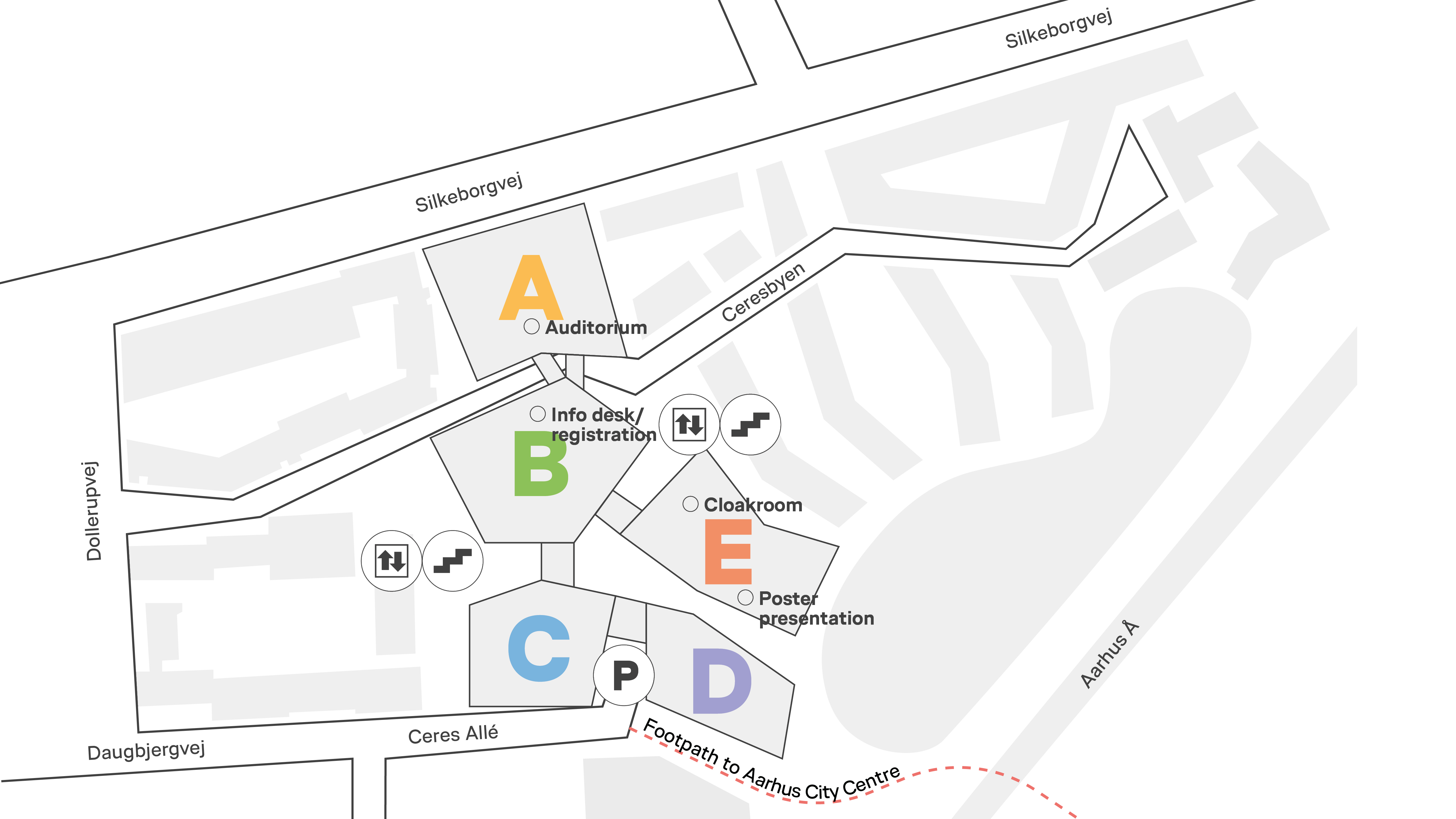 CFU i Aarhus er en del af det store kompleks VIA Campus C - med en stor parkeringskælder. Du kører til p-kælderen fra Daugbjergvej eller Dollerupvej.